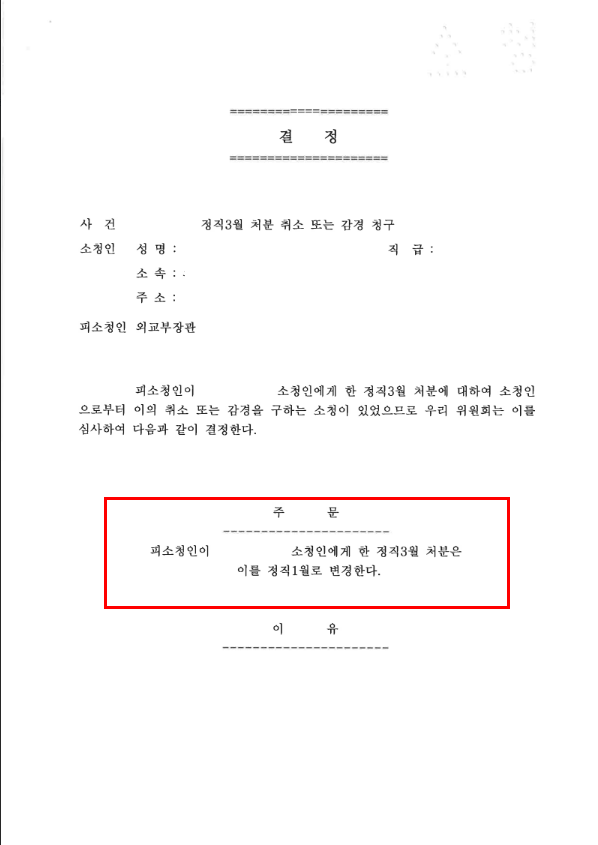 등을 고려하여 원처분을 다소 감경하여 주는 것이 바람직하다며 정직 1월로 결정하였습니다.