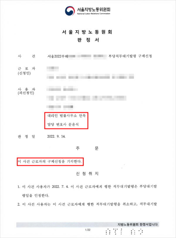 부당직무대기발령 구제신청 회사측 대리 성공사례