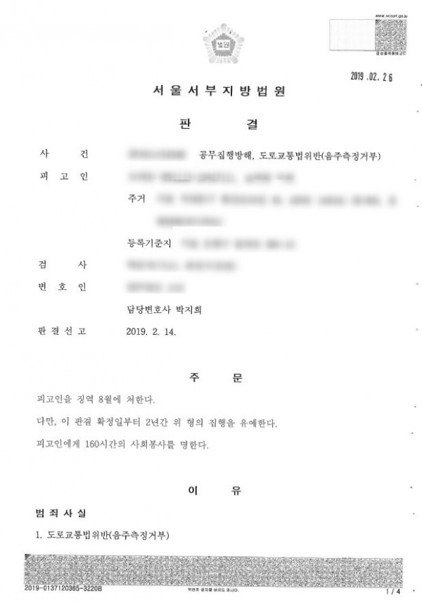 의뢰인은 음주 후 밤 12:50경 도로에서 오토바이를 운전하다 음주단속 중인 경찰관을 피해 인근 주유소로 안으로 들어가 정차한 후 오토바이를 운전하지 않은 것처럼 행세하였습니다. 하지만 의뢰인을 발견한 경찰관이 술 냄새가 나고, 비틀거리는 등 음주운전을 인정할 만한 상당한 이유가 있다고 판단하여 음주측정을 요구했지만, 의뢰인은 정당한 이유 없이 음주측정을 거부하였고, 이 과정에서 경찰관에게 욕설과 상스러운 말을 하면서, 음주측정 절차를 설명하는 경찰의 얼굴을 이마로 들이받았습니다. 그러자 검찰은 의뢰인을 도로교통법 위반(음주측정거부) 및 공무집행방해죄로 의뢰인을 기소하였습니다.